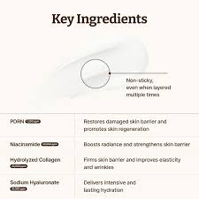 Εμπλουτισμένη με Νιασιναμίδη, Πανθενόλη, Κολλαγόνο και Υαλουρονικό Οξύ, η κρέμα προσφέρει εντατική ενυδάτωση, ενισχύει τον δερματικό φραγμό, καταπραΰνει ερεθισμούς και χαρίζει ομοιόμορφη, φωτεινή όψη.