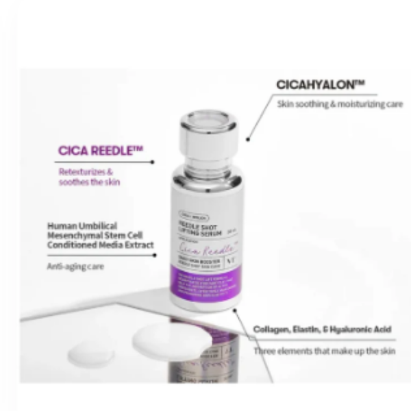 Ο VT Reedle Shot Lifting Serum είναι ένας προηγμένος αντιγηραντικός ορός που επαναφέρει την ελαστικότητα του δέρματος και βελτιώνει την υφή του. Με την καινοτόμα τεχνολογία CICA REEDLE™, που βασίζεται σε μικροσωματίδια πυριτίου εμπνευσμένα από το microneedling, ενισχύεται η απορρόφηση των ενεργών συστατικών για μέγιστη αποτελεσματικότητα.